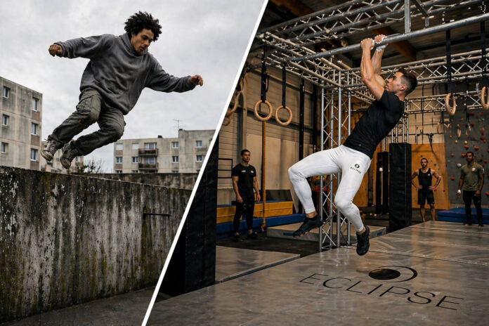 Esta evolución se hace evidente en la forma de entrenar, que ha pasado de la improvisación en las plazas a un sistema mucho más estructurado donde el cuerpo se prepara como una máquina de precisión. Si bien el espíritu original buscaba adaptarse a lo que la calle ofrecía, el auge de los centros de entrenamiento cerrados en ciudades como Lyon o Burdeos ha permitido que los practicantes utilicen elementos de las carreras de obstáculos para potenciar sus habilidades. No se trata de refugiarse en un gimnasio por miedo al asfalto, sino de utilizar las estructuras de suspensión y las jaulas de fuerza para ganar la potencia necesaria que luego permite ejecutar saltos más largos y escaladas más explosivas en el exterior. Esta «tecnificación del esfuerzo» ha permitido que los atletas franceses desarrollen una capacidad física muy superior a la de las generaciones anteriores.